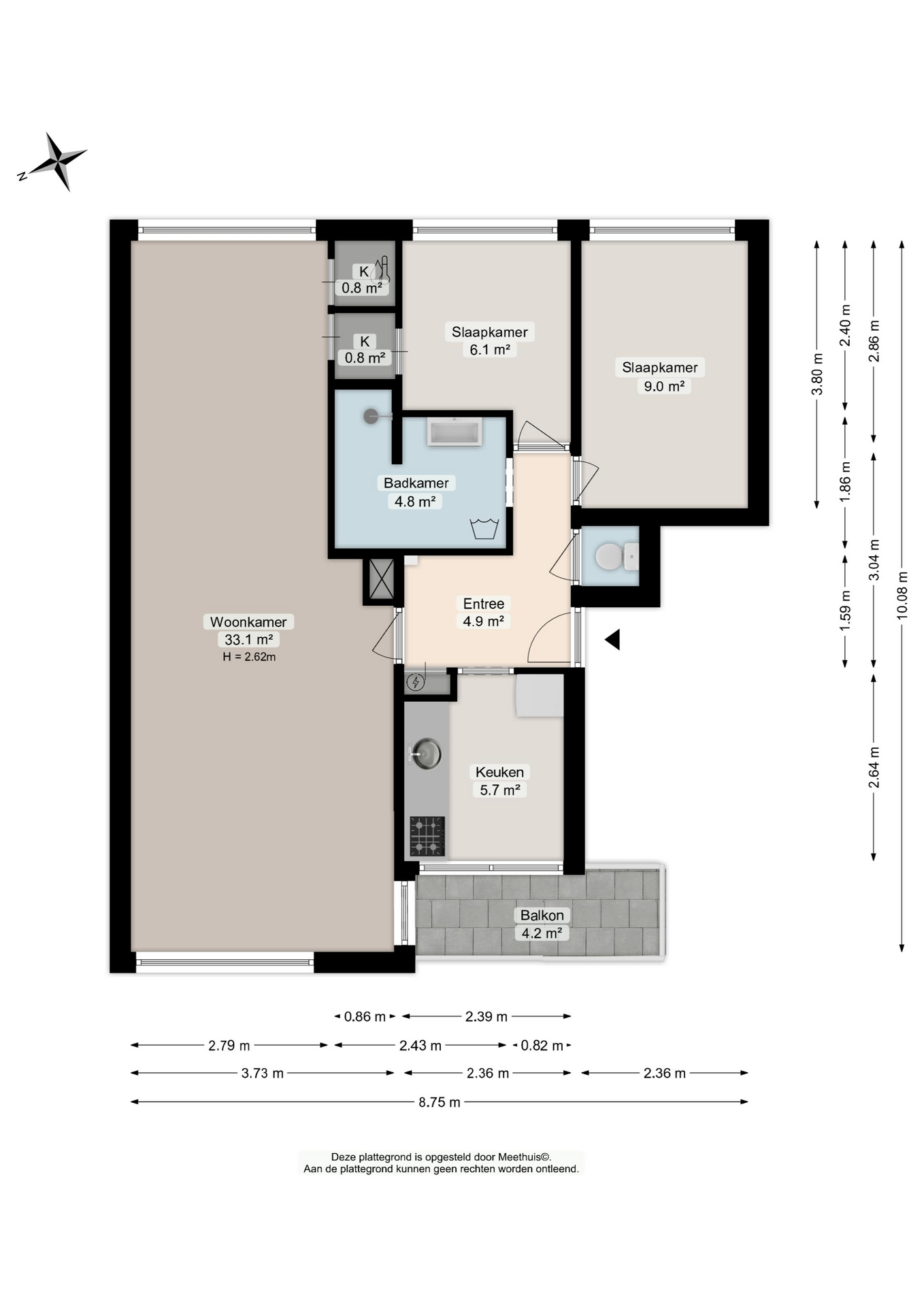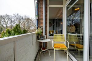 Het appartement beschikt over twee volwaardige slaapkamers van goed formaat (ca. 9 en 6 m²), ideaal als hoofdslaapkamer, werkkamer of logeerkamer. De nette badkamer (ca. 5 m²) is uitgerust met een inloopdouche en wastafel en heeft een verzorgde uitstraling. Daarnaast is er een balkon (ca. 4m²) waar je heerlijk kunt genieten van een kop koffie in de ochtendzon of even kunt ontspannen in de frisse buitenlucht.