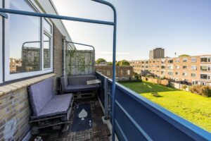 Slaapkamers: Twee prima slaapkamers van 11m² en 9m², waarvan de kleinste slaapkamer toegang biedt tot het ruime zonnige balkon(7m²) aan de achterzijde.