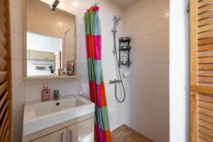 Badkamer: De badkamer(2m²) is voorzien van een douche en wastafel, ideaal voor een frisse start van de dag.