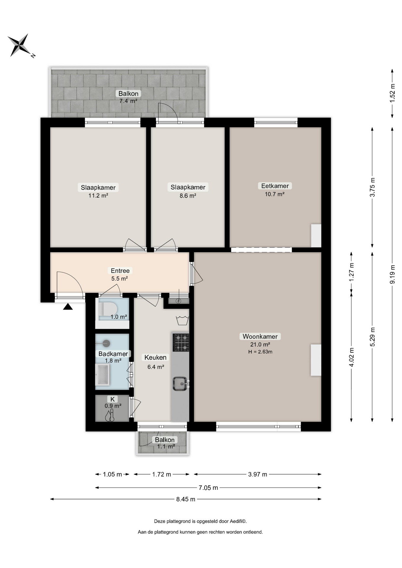 Keuken: De dichte keuken(6m²) is voorzien van een net keukenblok en biedt toegang tot het balkon(1m²) aan de voorzijde.