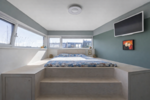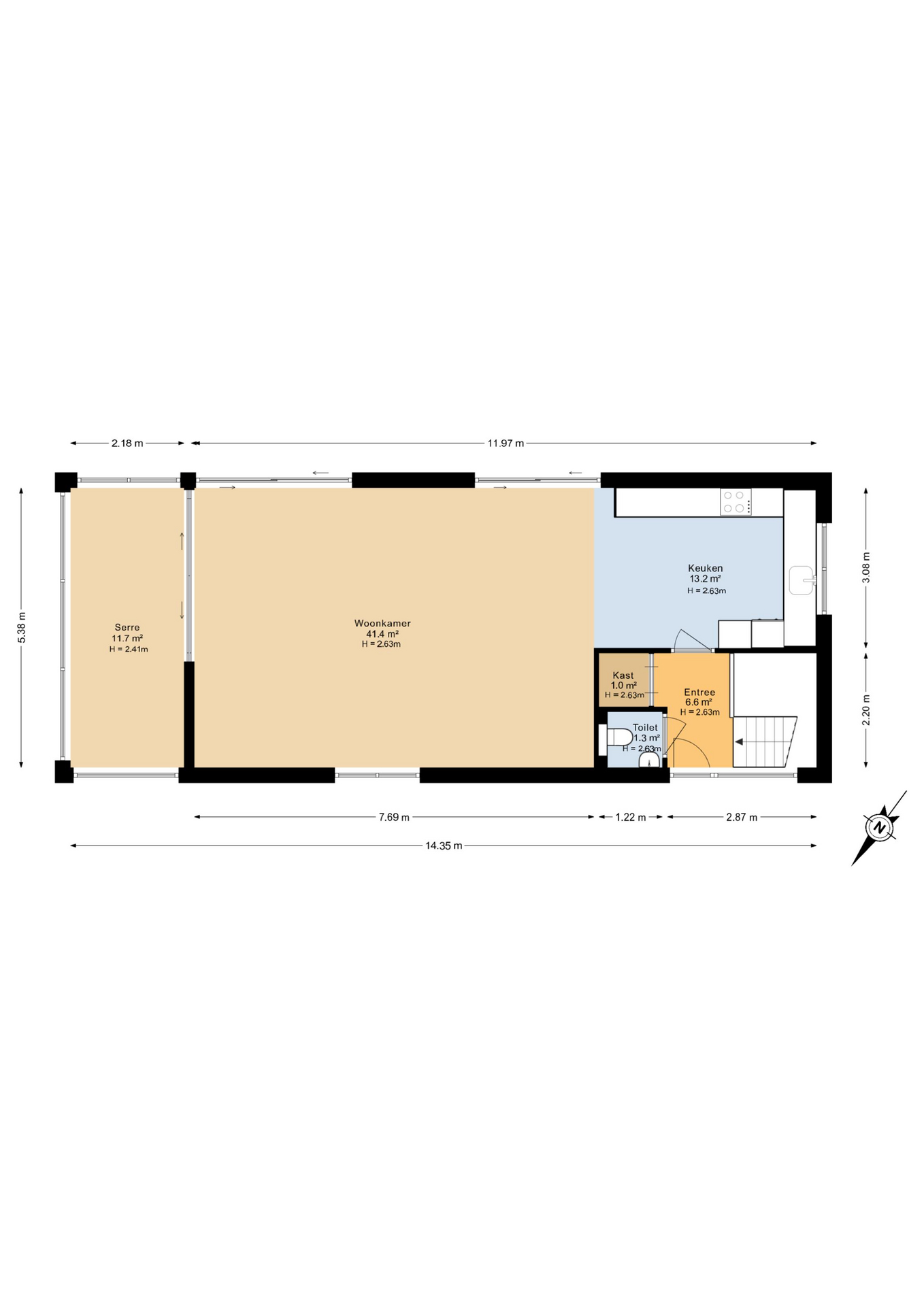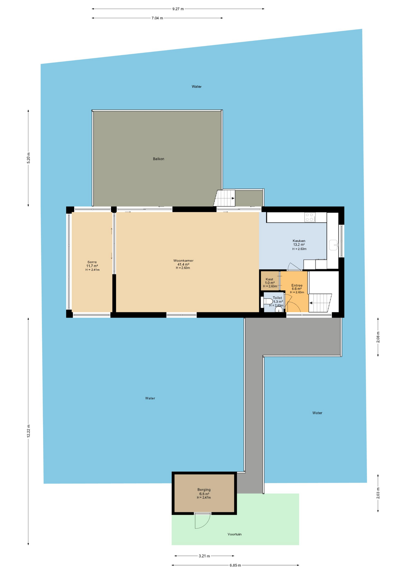 Via een stevige loopbrug bereikt u de woning. Via een een ruime hal met toilet krijgt u toegang tot de open keuken van ca. 13m². De keuken is modern uitgevoerd met diverse inbouwapparatuur, ideaal voor kookliefhebbers. Via de open keuken komt u in de indrukkwekkende, lichte woonkamer van circa 41 m² met een aangrenzende serre van circa 12 m². De grote raampartijen zorgen voor een prachtige lichtinval en panoramisch uitzicht.