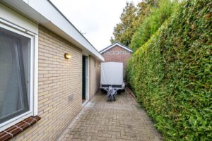 Een groot pluspunt van deze woning is het vrijstaande bijgebouw, dat momenteel is ingericht als woonruimte voor thuiswonende zoon met een garage(29m² en berging 10m²). Het gastenverblijf beschikt over een eigen woonkamer met open keuken(14m²), slaapkamer(6m²), badkamer(3m²), separaat toilet(2m²) en een berging(2m²) met cv-installatie. Ook is het bijgebouw voorzien van een eigen meterkast. Achter het gastenverblijf bevindt zich nog een privé buitenruimte, afgescheiden van de hoofdtuin, zodat gasten of bewoners van het bijgebouw ongestoord buiten kunnen zitten. Ideaal voor mantelzorg, een B&B (let op: vergunning zelf aanvragen), een praktijkruimte of thuiskantoor.