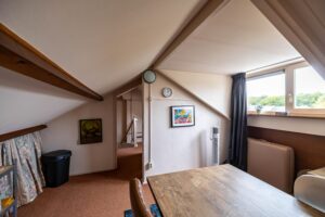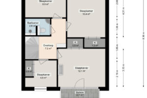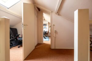 Via een vaste trap bereikt u de tweede verdieping met een ruime overloop(7m²), extra bergruimte en een vijfde slaapkamer(11m²).